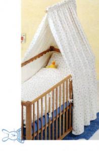 Pratico box in legno verniciato in bianco, corredato di parte tessile come da foto. Fondo regolabile in 3 altezze, in base all’età del bambino. Questo box è anc ... |